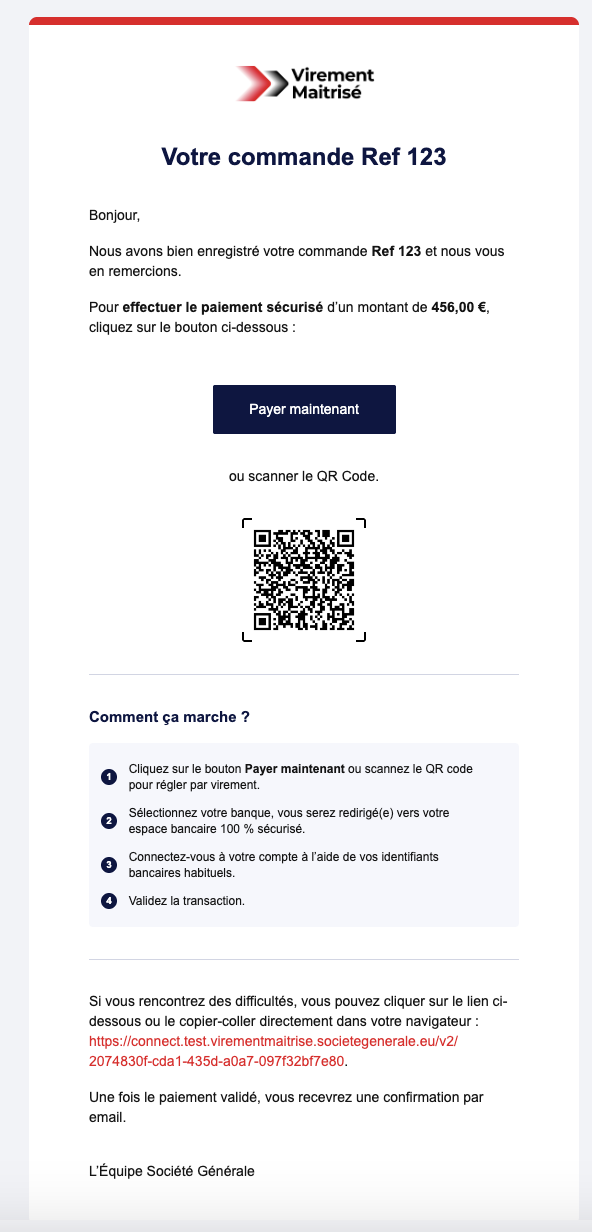 Une fois toutes les rubriques complétées, cliquez sur "Envoyer le lien de paiement par mail" pour que votre client le reçoive.